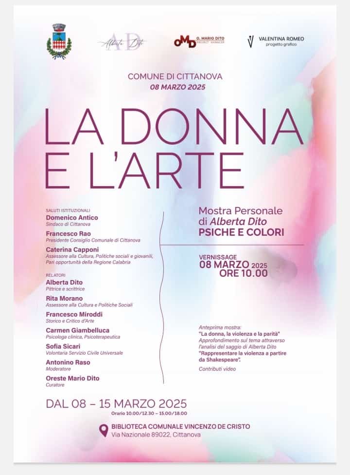 Nel corso del 2024 ha esposto con due personali di successo: “I Viaggi nell’Anima” al Polo Culturale Mattia Preti del Consiglio Regionale della Calabria, e “Sensi Astratti” presso la rinomata Galleria Area Contesa di via Margutta a Roma. Inoltre, durante la sua personale “L’Oltre” presso il Circolo Tennis R. Polimeni di Reggio Calabria, ha presentato il suo saggio intitolato “Rappresentare la violenza a partire da Shakespeare”.