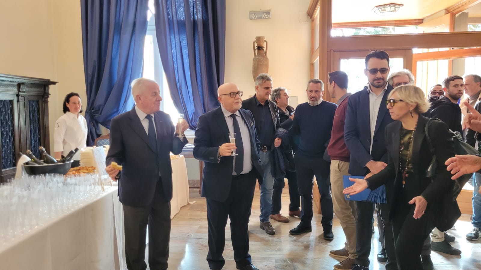 Il brindisi tra il presidente Claudio Scajola e il prefetto Romeo suggella la conclusione del consiglio provinciale, l’assemblea dei sindaci e la riapertura del bar.