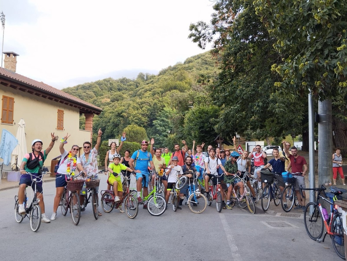Nessuna regola in particolare, a parte quelle del codice della strada, nessun costo di iscrizione. Solo buonumore e un pizzico di goliardia, che hanno rallegrato un pomeriggio di sport un po’ particolare, considerate le dieci tappe previste nel percorso in altrettante osterie e bar, fra Montemale, Valgrana, Vallera e la meta finale.