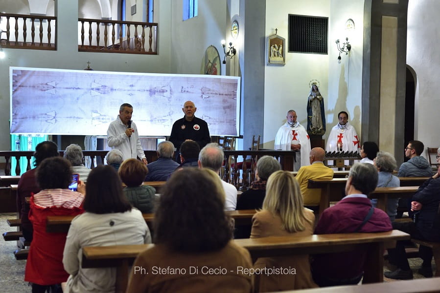 PISTOIA – Nella Chiesa dell’Immacolata Concezione a Pistoia, più nota forse come chiesa dei Cappuccini e chiusa da più di dieci anni, si è svolta una conferenza sulla Sacra Sindone. Ad organizzarla è stato il gruppo di Pistoia dei “Templari Oggi APS” e più precisamente il responsabile Umberto Grieco, o meglio Comandatore così come veniva indicato nell’antico ordine. Il gruppo si occuperà della riapertura della chiesa con un calendario liturgico che, su istruzioni del Vescovo, verrà concordato con il parroco della parrocchia del centro di Pistoia. Un calendario di aperture comunque da definire, sicuramente momenti di preghiera settimanali e momenti liturgici di celebrazione, di concerto con il parroco.