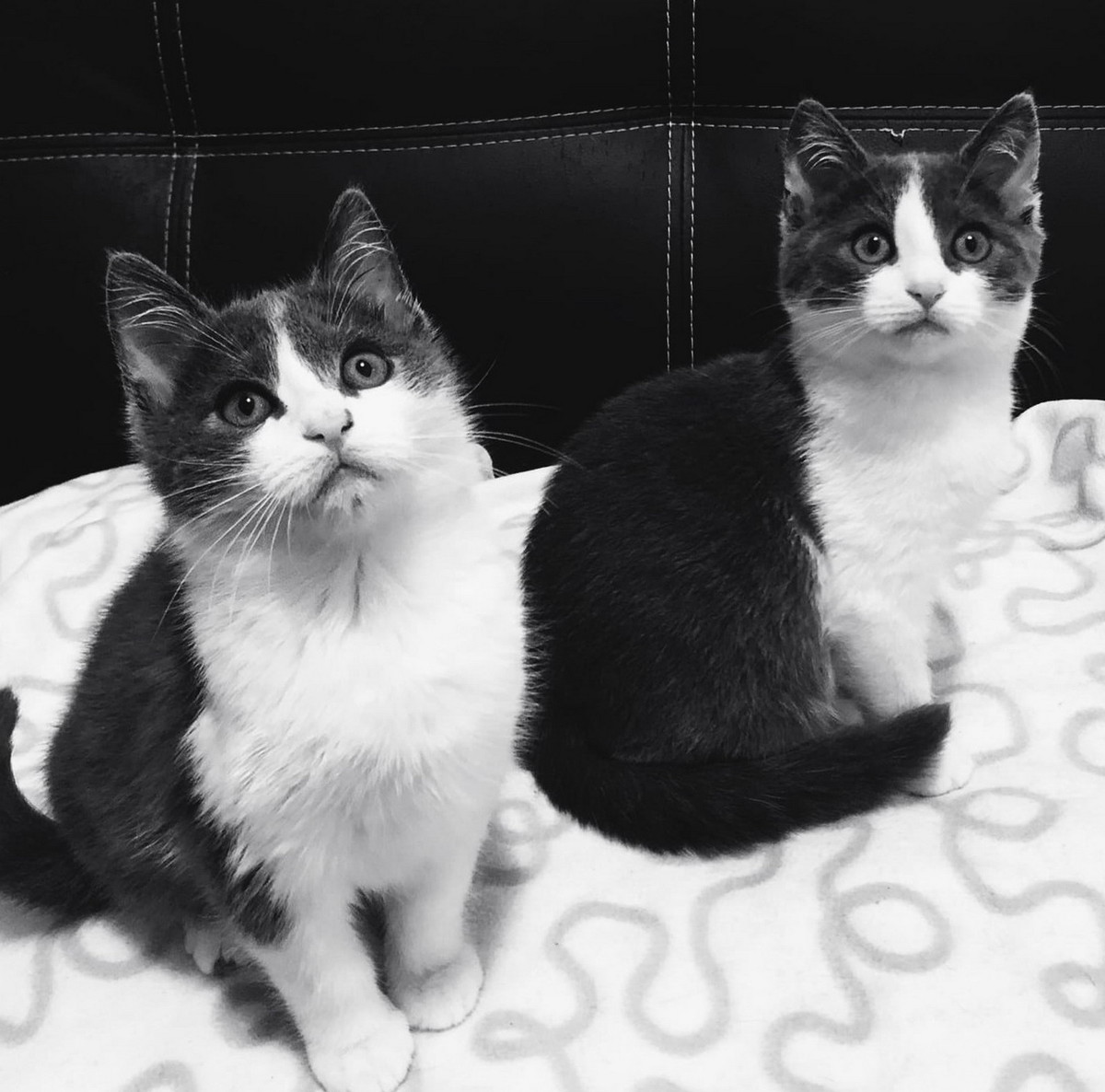 Krapfen e Maritozzo (con macchietta nera sul nasino e sul mento) sono due stupendi maschietti gemellini di circa tre mesi con mantello grigio/blu e bianco (nelle foto).