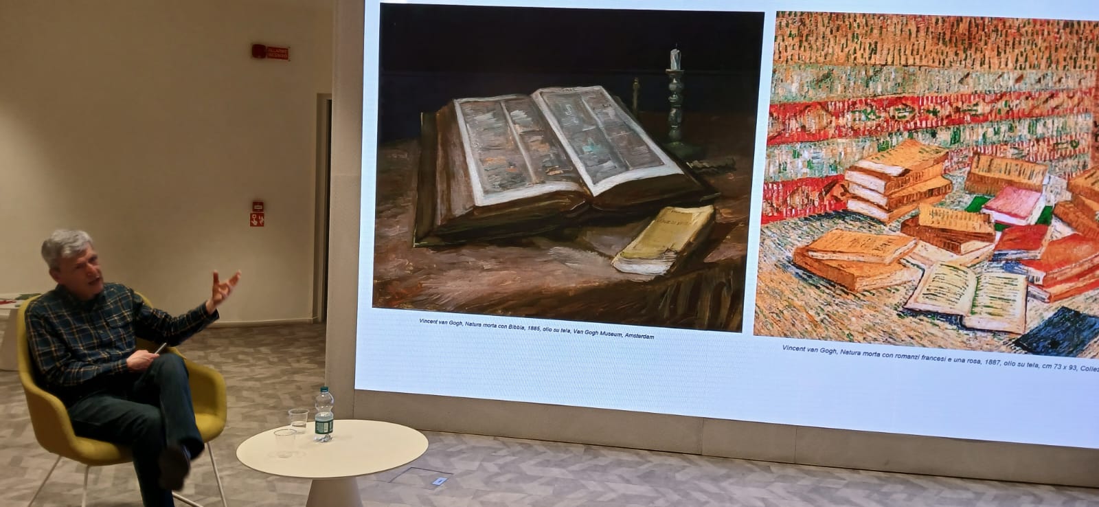 Nella serata si è raccontato di come si è creata la scrittura attraverso le immagini, passando da pittogrammi all’alfabeto, per narrare poi dei cambiamente poetici e visivi nella storia umana, trattando anche culture extra-europee che hanno dialogato nel trasformare e formare le scritture contemporanee.