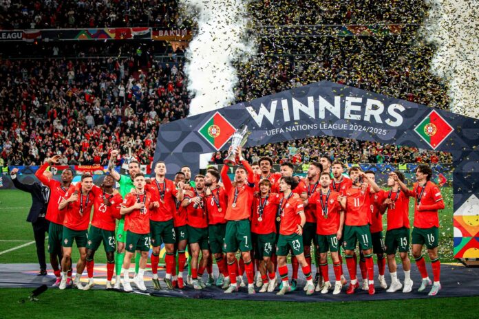 MONACO DI BAVIERA (GERMANIA) (ITALPRESS) – È il Portogallo a trionfare in questa edizione della Nations League, grazie al successo centrato ai calci di rigore ai danni della Spagna dopo il 2-2 dei primi 120 minuti di gioco. Non sono dunque bastate le reti di Zubimendi, Nuno Mendes, Oyarzabal e Ronaldo per decretare un vincitore nei tempi regolamentari. La prima chance è per CR7 e compagni e arriva al 5′, quando Neves ci prova con il destro da posizione favorevole ma schiaccia troppo e spedisce a lato.