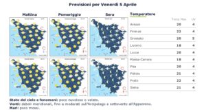 Già questo venerdì 5 aprile, cielo poco nuvoloso con venti dai quadranti meridionali e mari poco mossi.