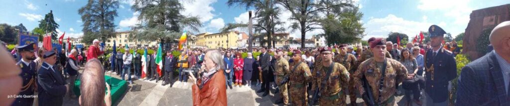 Quello che stiamo vivendo adesso, in Europa e nel Mondo, è la dimostrazione che non abbiamo ancora oggi abbastanza anticorpi per non ripetere il passato. E credo che, al di là di come la si pensi, non si possa non dire che Bergoglio sia stato tra i più attivi per raggiungere la pace. Per questo, oggi in particolare, è fondamentale mettere al centro delle nostre azioni la Costituzione, ispirarsi a quei valori di libertà ed uguaglianza che essa sancisce, avere memoria di quanto accaduto, tramandarla, questa memoria, ai ragazzi e alle ragazze, con l’orgoglio di essere in una città medaglia d’argento al Valor Militare il cui contributo di sacrifici e di sangue offerti ne esalta l’attaccamento ai superiori principi di libertà e giustizia. Non riusciremo a cambiare le sorti di un mondo in guerra che non abbiamo il potere di controllare, ma abbiamo il dovere di fare la nostra parte, di avere un pensiero libero e critico, fondato sulla conoscenza, per non tradire quelle persone che ottant’anni fa hanno liberato l’Italia e per costruire un futuro diverso.