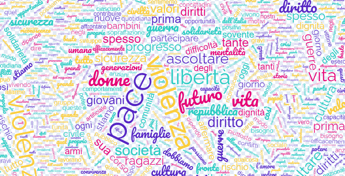 ‘Diritti’, ‘valori’, ‘dignità’ e solidarietà, costituiscono poi una famiglia di parole che figura complessivamente 14 volte. Le parole ‘speranza’ e ‘orgoglio’ trovano posto nello speech di Mattarella due volte ciascuno. Infine risalta l’utilizzo del verbo ‘ascoltare’, che ricorre ben 5 volte nel discorso di Mattarella.