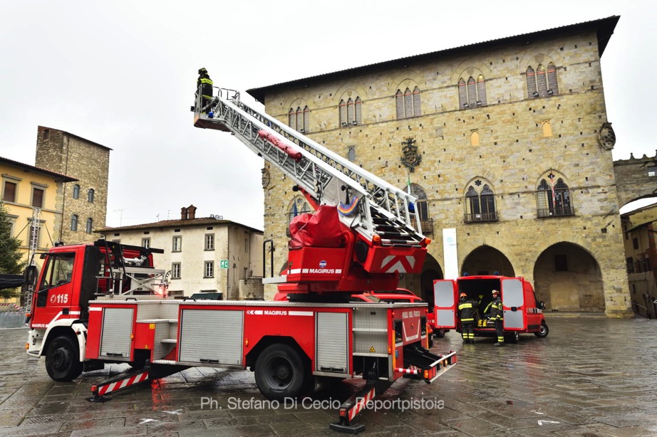 Sarà la volta quindi dell’incidente della Befana e l’intervento dei Vigili del Fuoco e dell’Associazione Nazionale Vigili del Fuoco sezione di Pistoia. Ci dice il Comandante Fabrizio Priori: “E’ personale esperto e competente. Ad interpretare la Befana può partecipare solo chi è in una specifica graduatoria, ma chiaramente c’è anche un collega di backup, se il designato non potesse scendere, c’è il collega che può subentrare”. Leonardo Melani, Presidente dell’Associazione naz.le VVF aggiunge: “L’Associazione nazionale organizza questo evento da tantissimi anni, è per noi un orgoglio. Speriamo di far felice tanti bimbi che accorreranno in piazza. La preparazione inizia a settembre con gli incontri per mettere a punto tutte le cose, perché niente deve essere lasciato al caso”.