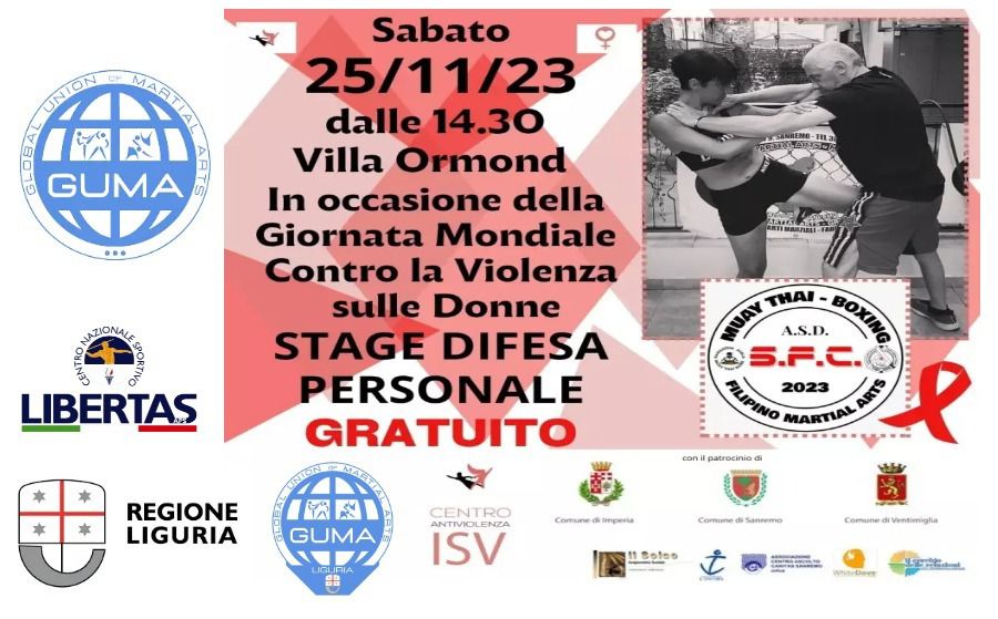 La palestra Street Fighting Concept ha organizzato per il 25 novembre alle 14.30 a villa Ormond uno stage gratuito di difesa personale in occasione della Giornata Mondiale Contro la Violenza sulle Donne.