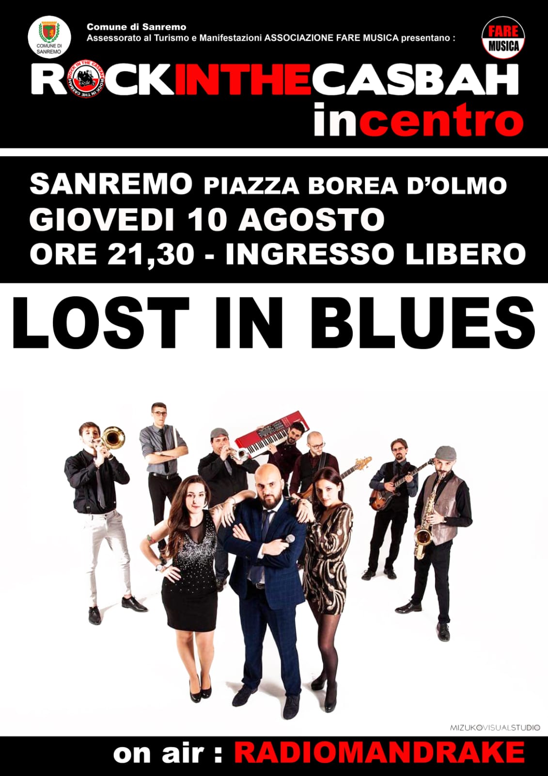 Protagonisti della serata i Lost in Blues. Navigata e nutrita compagine ponentina che prende spunto dalla grande tradizione rhythm and blues americana, tanto Blues Brothers e non solo. L’appuntamento è fissato per le 21.30 di giovedì 10 agosto in piazza Borea d’Olmo a Sanremo con ingresso libero.