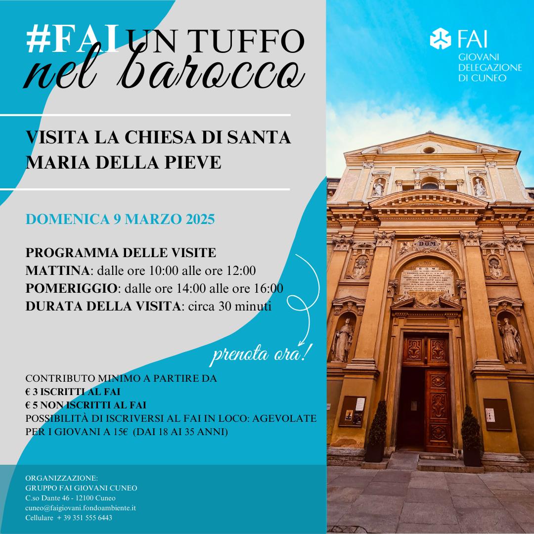Domenica 9 marzo, il Gruppo FAI Giovani di Cuneo invita tutti a una visita straordinaria alla Chiesa di Santa Maria della Pieve, gioiello barocco nel cuore della città.