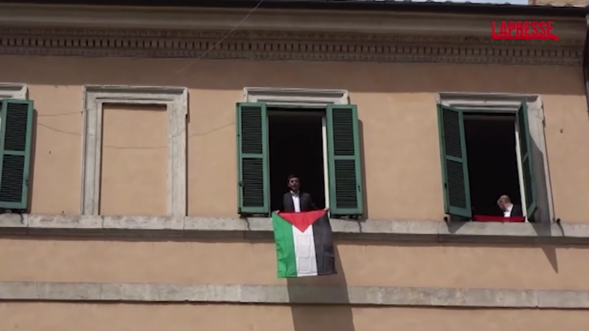 La bandiera palestinese esposta dalla sede di Sinistra Italiana. “Quello di oggi è solo un piccolo gesto, ma è anche un appello a tutte le cittadine e a tutti i cittadini che non si rassegnano all’orrore di ciò che sta accadendo in Palestina”. Il leader del partito Nicola Fratoianni commenta così l’iniziativa di questa mattina: dalla sede del partito di Corso Rinascimento tre bandiere palestinesi sono state srotolate dalle tre finestre affacciate su Palazzo Madama, sede del Senato.