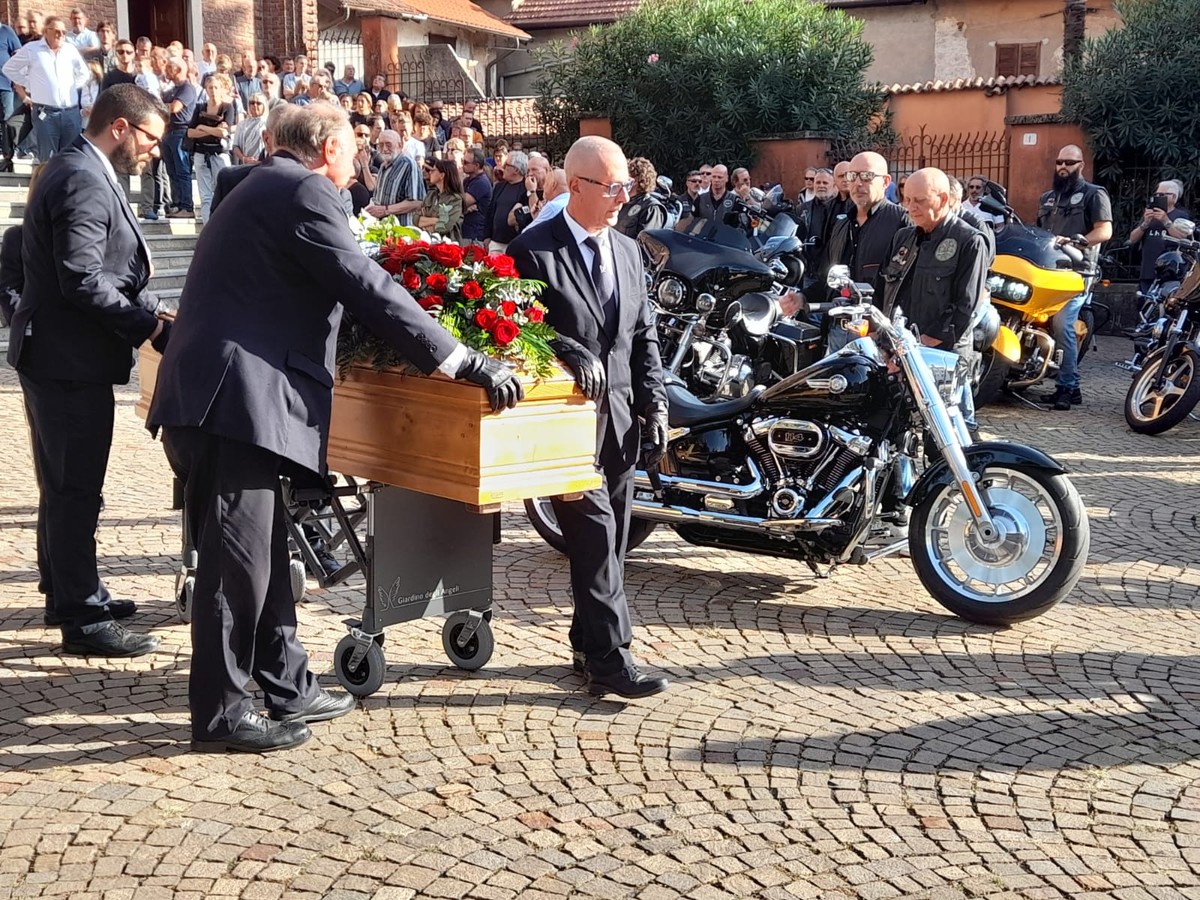 È stato punteggiato dal rumore l’addio a Ivan Miotello, stroncato da un malore a 61 anni (LEGGI QUI), mentre cercava funghi in val Sermenza. Il rumore di applausi scroscianti, nella chiesa colma di Sant’Anastasio, per le parole della mamma Annamaria, della moglie Rosa, quasi 40 anni di vita insieme, e di Morena, la sorella. Il rumore delle moto schierate sul sagrato dai bikers con cui Ivan ha condiviso la passione per i motori e per le due ruote. (LEGGI QUI)
